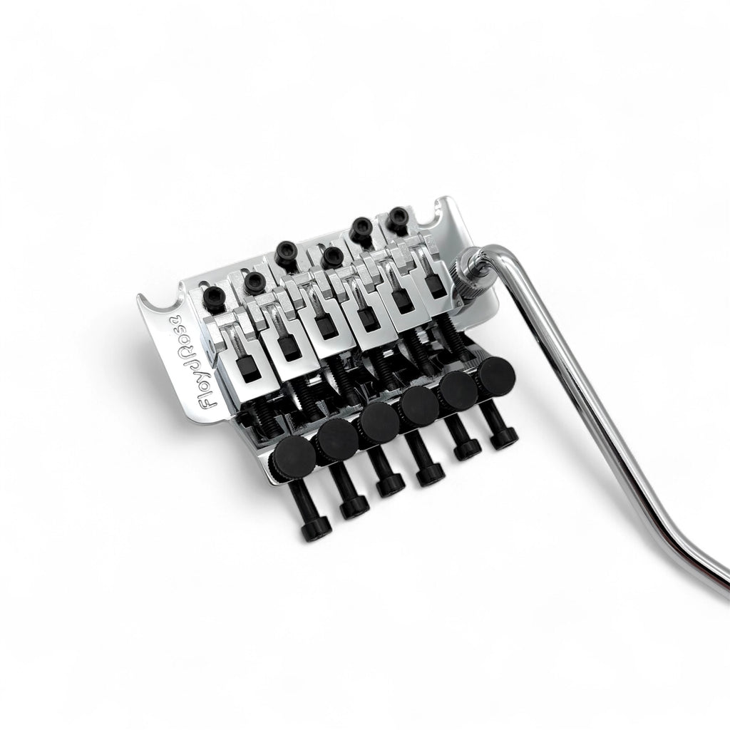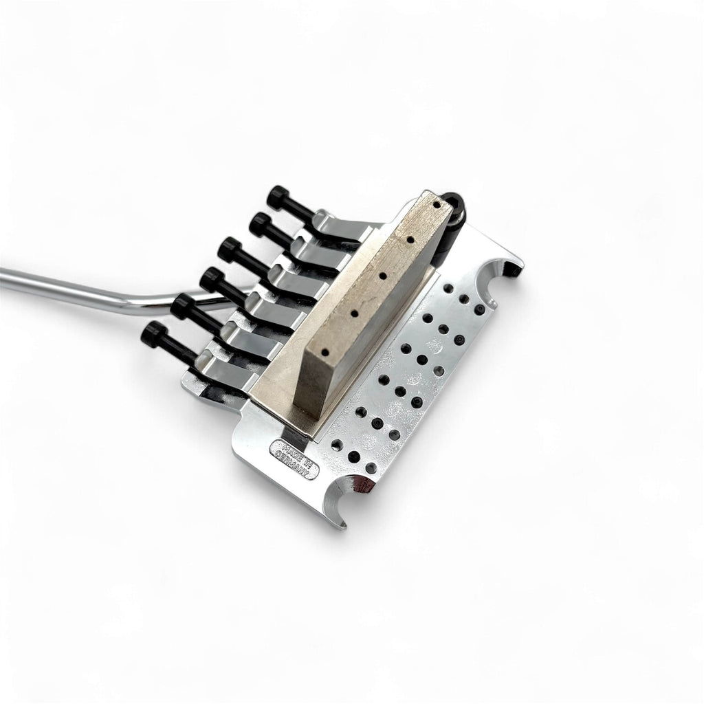 Newer Original Floyd Rose FRT100 Made in Germany by Schaller. Shows no signs of use. Set up for 10” radius with shim under the saddles. 37mm brass block.