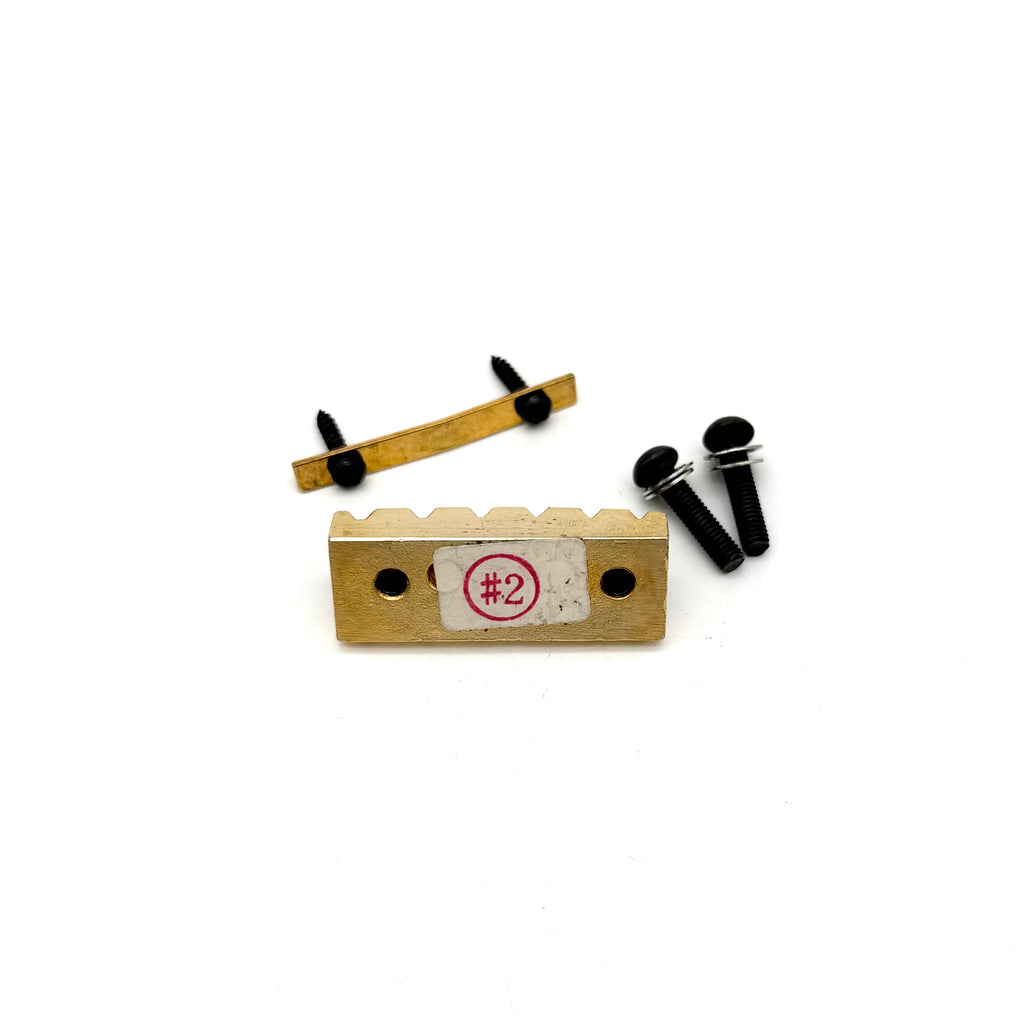 This is a New Old Stock Original Floyd Rose 4508 Locking Nut in Gold. String retainer and mounting screws included.